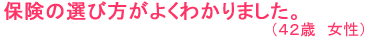 今までは難しいと思っていた保険でしたが、とても分かりやすくポイントを説明して頂いたので、